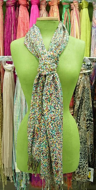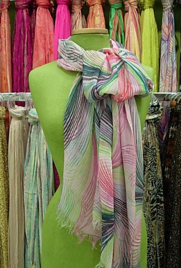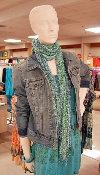 When I worked in retail display, dressing mannequins was one of my duties.   Day scarfs are very popular and I accessorized many mannequins with them.  I’d often hear from customers – “I bought a scarf, but I never know how to wear it , can you show me.”