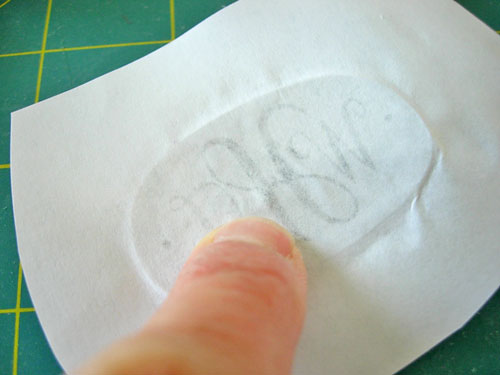 Center the monogram face down onto the glue and gently burnish the back with your finger to smooth and removing all air bubbles. Be careful not to pull the paper. Let dry for a few hours.