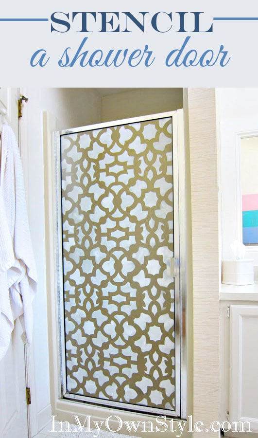 I just saw this on Pinterest and it is absolutely fantastic! I have the same tired shower door, and I’m thinking it will get a stenciled facelift!