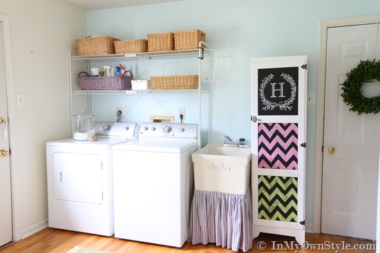 I have recently discovered your awesome blog and am going to do the monograms soon! I would like to know where you got (or if you made) the shelf over your washer and dryer? We live in military housing and have a garage laundry. Something like that shelf would be great since it doesn’t look permanent.