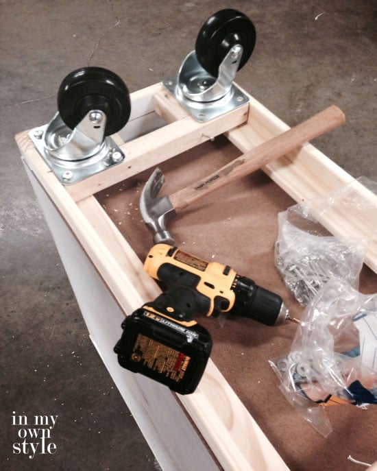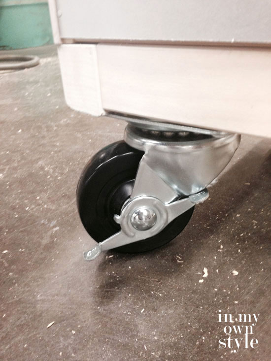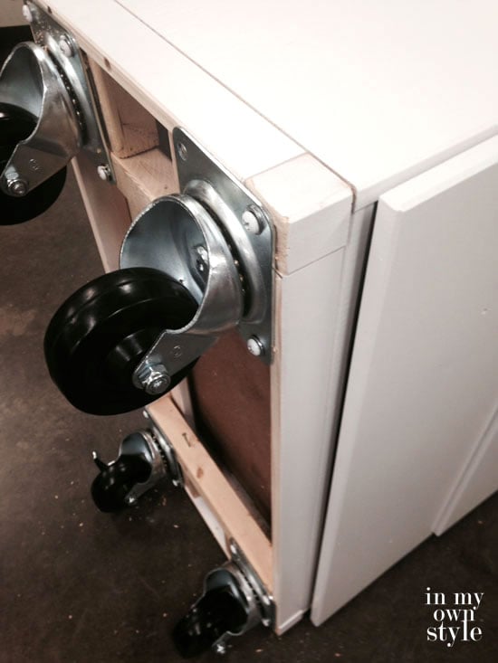 ***If making this for a child’s room, you may not want to use wheels. Most IKEA pieces are lightweight and can tip. All their pieces come with wall mounting hardware to keep the furniture secure.