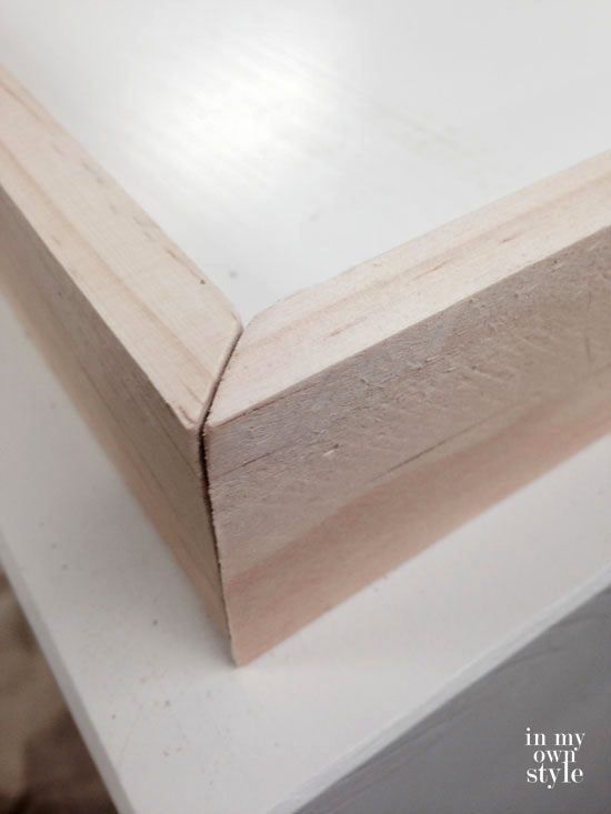 I used a saw and miter box to cut the wood to the size needed. I used Liquid Nails to attach it to the top of the dresser.