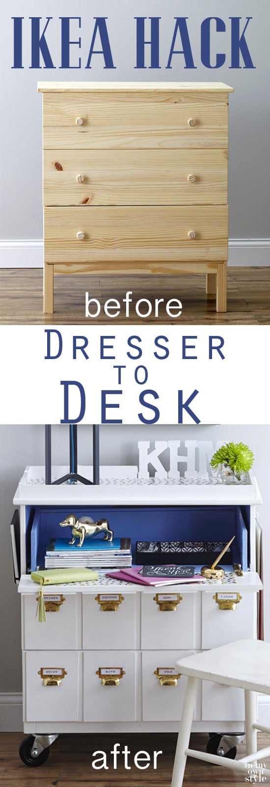 How to transform an IKEA TARVA dresser into a Drop Leaf Desk.