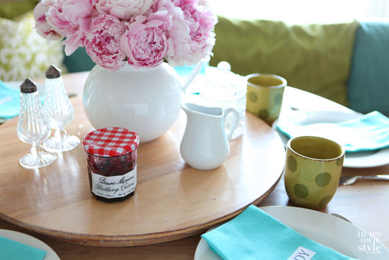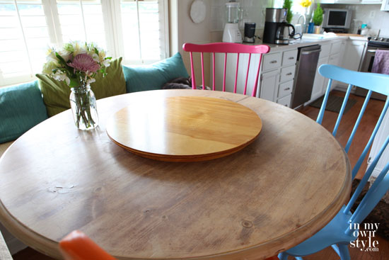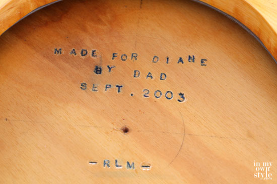 28. Diane, that is so wonderful…rediscovering something so special your Dad made just for you. I almost cried seeing the stamped message under the lazy susan. I’m so sorry for your loss, but it’s wonderful you will think of him every day as you sit at your kitchen table :-)
