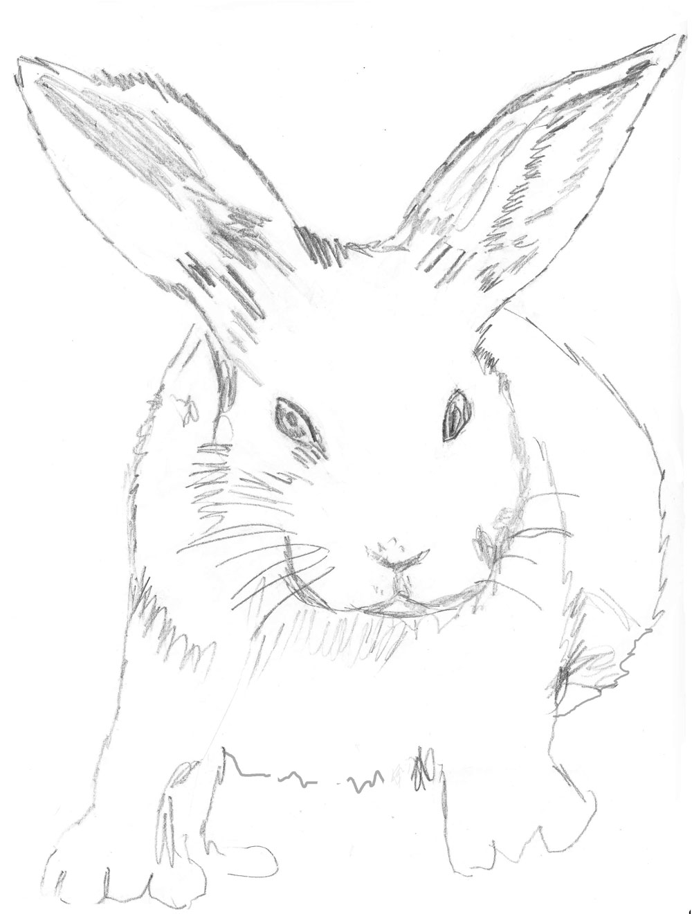 The rabbit in this image had the perspective of a rabbit that I was looking for with his front paws out in front so he could sit inside the wreath. I liked it, but I was looking for a more sophisticated sketch of a rabbit.
