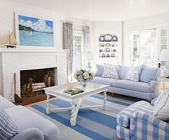 It hit me when I walked into my sofa-less living room this morning and realized I didn’t lighten things up for the summer months. Time to make at least a little effort to “summerize” the room.