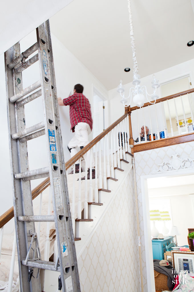 We have a two story foyer that has only been painted once in 20 years. It was time for a fresh coat of paint.