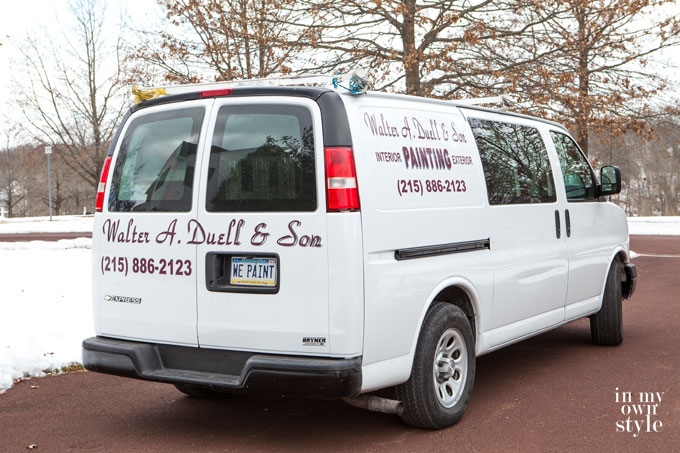 Since we don’t have the proper ladders and equipment to paint the two story walls, we saved up so we could hire the pros to do it… my brother-in-law Dave and his dad Walter for the job. Notice their license plate? :-) If you live in suburban Philadelphia and need a painter, here is a link to their website.