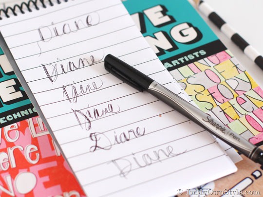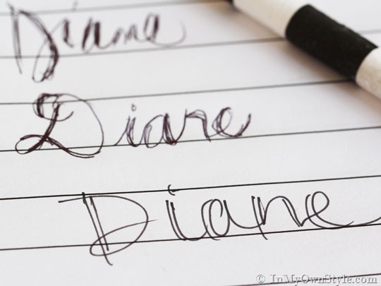 To show you, I used a fine tipped Sharpie and wrote my name a few times in different handwriting styles and letter spacing.
