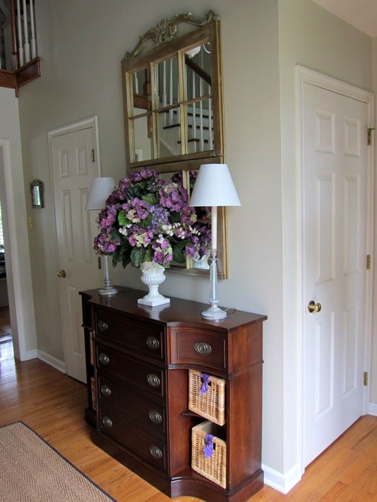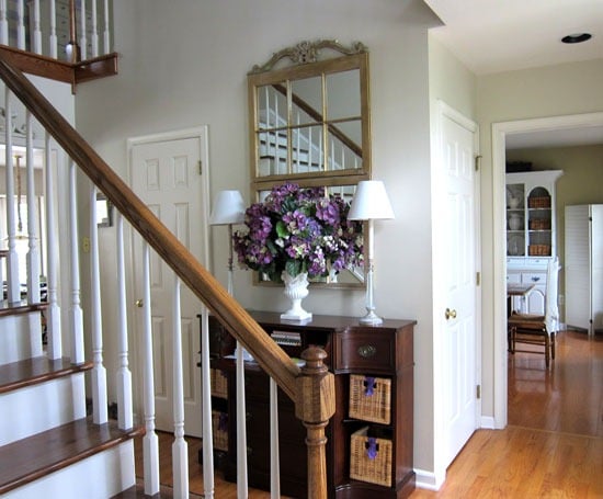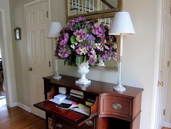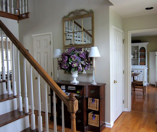 P.S. I love love love your foyer table/console. I think my mom’s secretary has the same knobs. Here secretary has a small glass hutch attached. I have a secretary desk, in my living room, and am thinking of painting it, but first my living room needs new colors and sprucing up. Now I have a fall thing going on with a burnt orange wall (you can see my wall through my kitchen window if you drive down the street. bright and fall like which is perfect for this season. I still have to show that in a blog post. hmm!!!