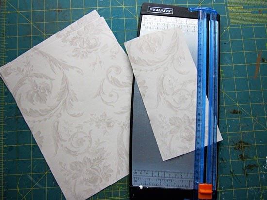 - Cut wallpaper, scrapbook paper, maps or any decorative paper tall and wide enough to fit around the stem of the lamp.