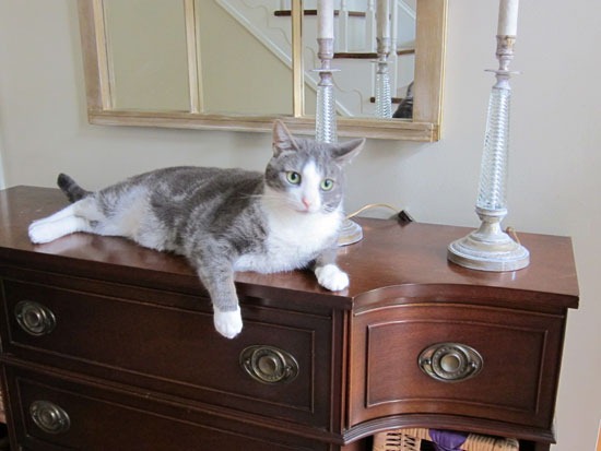 My helper, Trax – he just had to check out this new empty surface. He made himself quite comfortable – gotta love him.