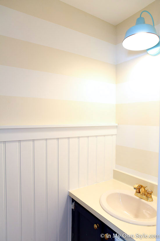 Your stripes came out great! I love horizontal stripes in a bathroom, looks great with the beadboard, too!