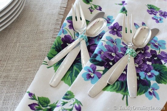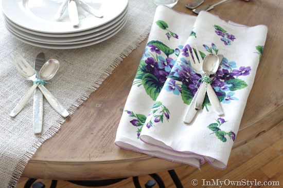 - If you don’t have cloth napkins, you can also use pretty dishtowels, tea towels, or vintage handkerchiefs.