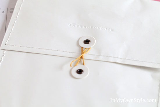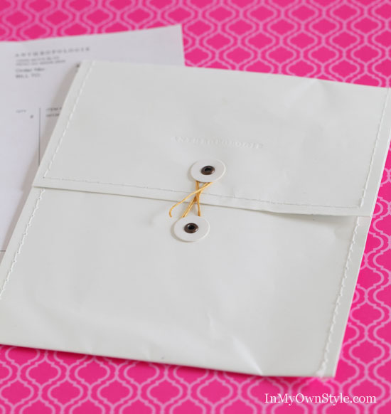 I was reminded of this when I received the clock face cabinet knobs for my powder room that I ordered from Anthropologie. In the box along with the knobs that came to my doorstep was the receipt for the order in a styling sewn envelope.