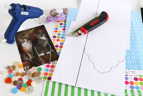 If you don’t have scrapbook paper – use gift wrap or maps.