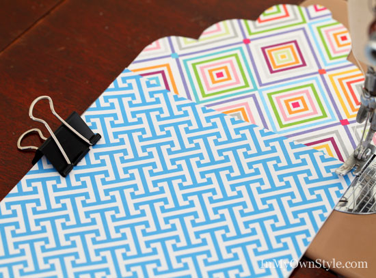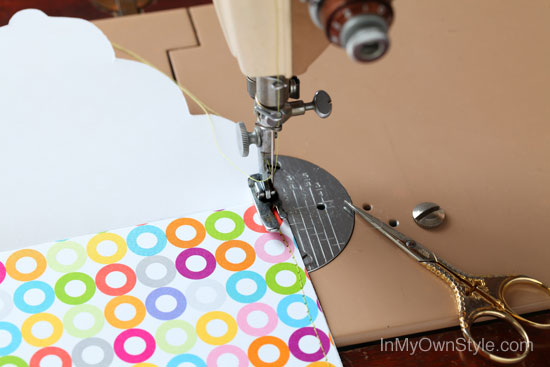 Stitch sides together using a large stitch 1/8″ from the edge using a coordinating color of thread.