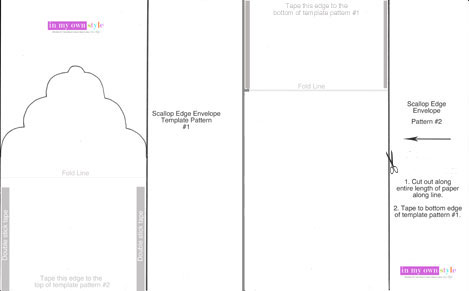 1. Print out both pdfs. Cut each one out and then tape the bottom of #1 to the top of #2 to make your template. It will be very long. This is so that you can fold it to make an envelope. You can also change the size of the template by the way you fold over the flap – bringing it down to the bottom edge of the envelope or by cutting some of the length off and making it shorter.