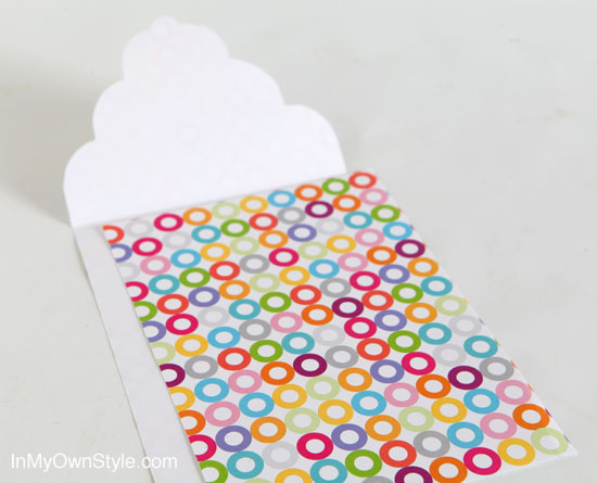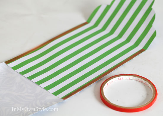 VARIATION: You can also use scrapbook paper. Since scrapbook paper is not as long only 12″ x 12″ you will need to cut the template in two. (Using gift wrap you can fold one long piece into an envelope.)