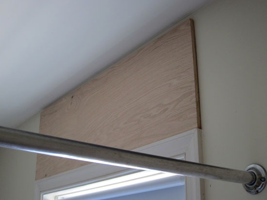 I cut a piece of very smooth plywood the width of the window x the height between the window and the ceiling. It is the same thickness as the existing window trim. I used Liquid Nails to attach it to the wall.