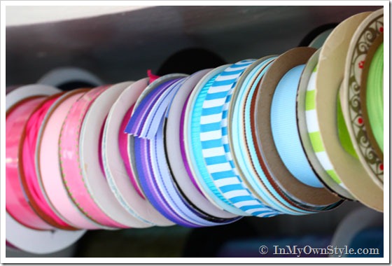 I store a wide variety of ribbons in the crafts cabinet in my craft room aka… my studioffice.
