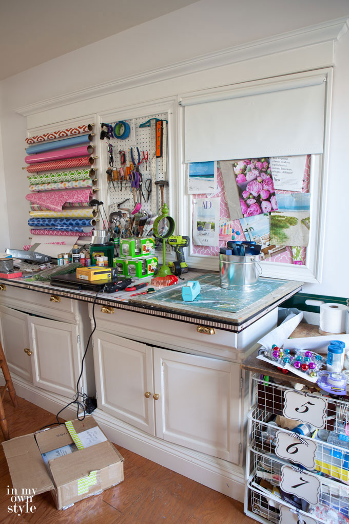 This is where I bring what I am going to use – my studioffice. When I am in decorating mode – it looks like this – a creative mess, but one that I function well in.