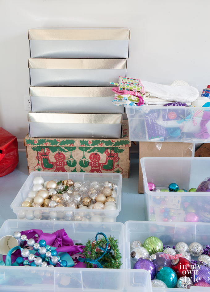 Thanks for the great post. Our basement is a finished walkout…so no real storage. I’ve got some decor stored in our garage, some in a closet under the stairs, and some in a spare room closet. I’ve pared down the decorations over the years, but still have quite a bit. One thing I’ve always found to be helpful, like you, is to separate ornaments by color, in plastic bags…only the non-breakables. Ziplocks have kept me sane! ;)