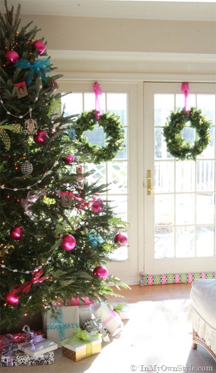 I love everything….. (I know, surprise, surprise) and your tree is not yet decorated? I sure thought it was, but can’t wait to see more. Back in or around the mid 80’s, I was enamored with turquoise and lavender together, but never could come up with the money to decorate even one room with them…… but now I am into your turquoise and pink…. I love them together too.
