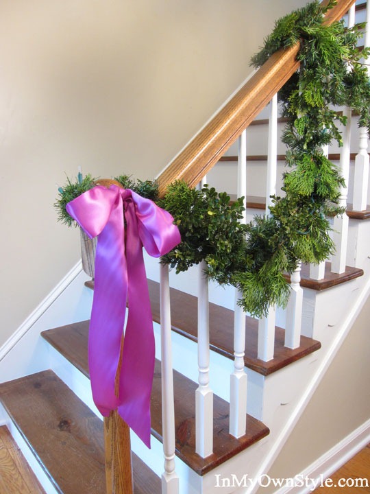 Banister garland. This is the first Christmas that my staircase has no carpet – loving it!