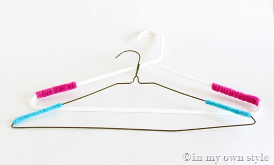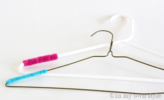 To come up with a way to keep my clothes from slipping off the hangers, I rummaged through my stash of crafty supplies and began playing with a few colorful pipe cleaners.