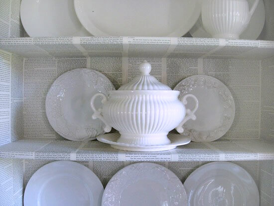 Use the whole page or cut the sections from the book pages you like to line drawers. Use matte Mod Podge to apply.