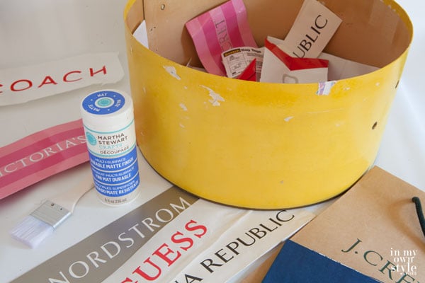 I have many of these bags and decided to repurpose some of them to update the outside of the hatbox. You may remember I did something similar with the bags when I made subway style art using them.