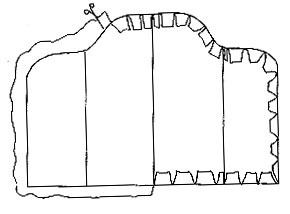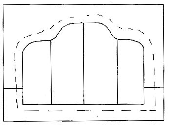 2. Fold entire board in half as shown. Draw and mark the pattern you want cut on the top edge on two panels as shown above. You can draw it freehand or use a large plate or platter to create the rounded edge. Cut pattern out with utility knife.