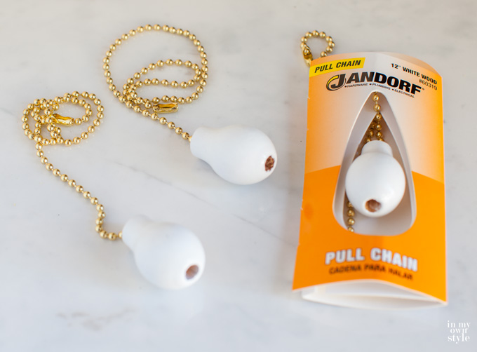 The last little detail I have been adding is removing the old pull chains from the many ceiling fans in the house with fresh new white pulls. This simple update makes a big difference.