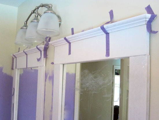 I used Liquid Nails to attach it to the top of the mirror frame.