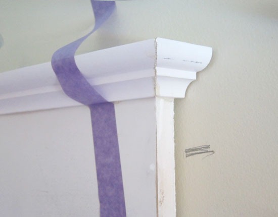 I first positioned the front piece and taped it securely in place until dry. I used a bubble level to make sure it was level.