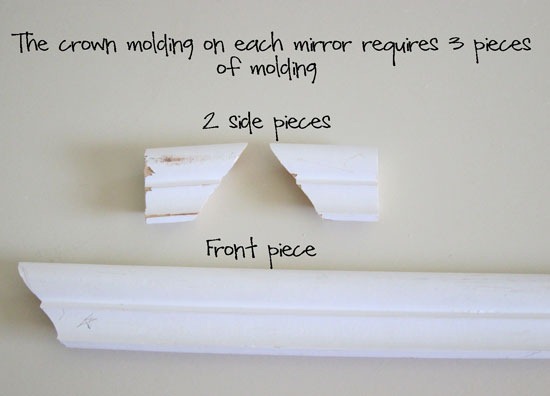 Once the glue is dry I will paint the frames in a semi gloss white and caulk to hide all the imperfections. Caulk is a DIY’ers best friend when they are installing crown molding and want it to look good. Once that is done the mirror frames will be done.