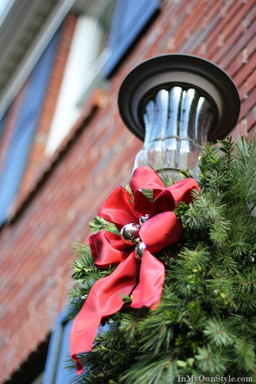 Here in Florida real greenery would last about an hour. But that doesn’t mean I can’t use this brilliant idea for my front door sidelights. I’ve already made my door wreath and now I just have to dress the lights to match. Thanks!!