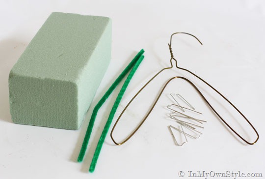 A picture is worth a thousand words! Once I saw the picture with the coat hanger and the florist foam, I was gathering all the materials. Your blog is wonderful! Thanks so much for all the great ideas.