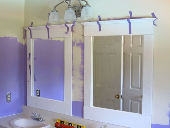 Here you will find the step-by-step tutorial for adding molding around a bathroom vanity mirrors: