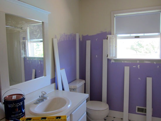 Painting the wall above the board and batten the same color creates a nice flow around the room.