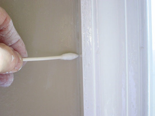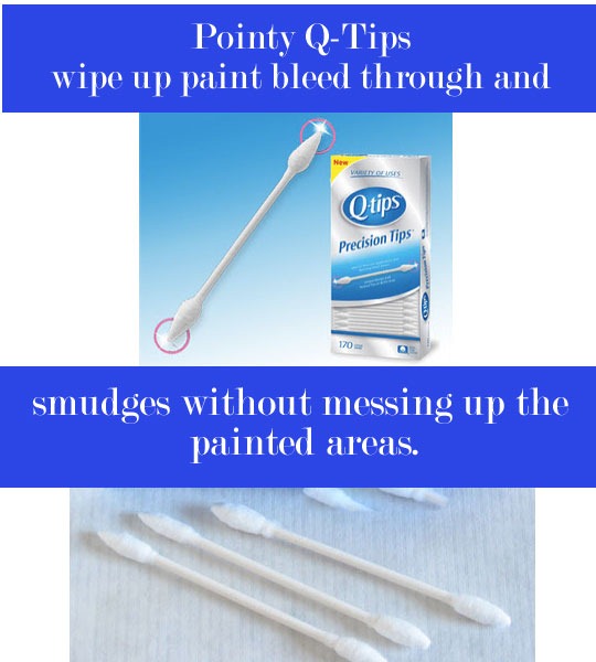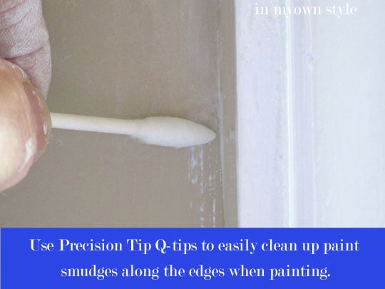 To make quick clean up of drips, paint bleed along edges where the painted trim meets the wall, use pointy style cotton swabs called Precision Tips.
