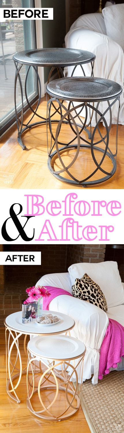 How to spray paint stacking metal tables to a color that coordinates with your rooms decor and color scheme.