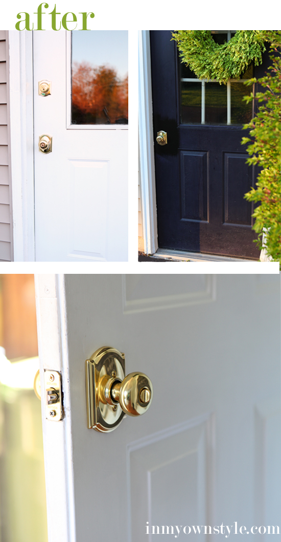 You sure did a spectacular job on repainting your doors. If you had not told us that you repainted it, well I would have thought it a brand new door. Everything looks so perfect. I want new shiny, polished brass for my doors too.