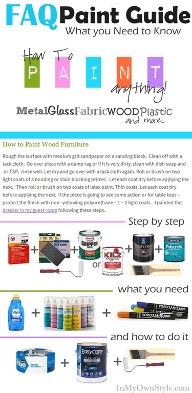 My paint guide will serve as a reference for anyone that has basic painting questions, are not sure how to start, or don’t know what products to use. You can find the page here: How to Paint Anything