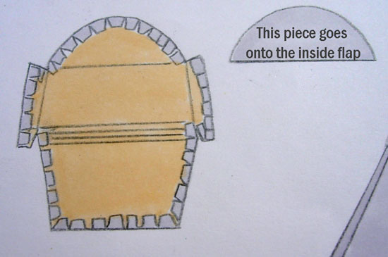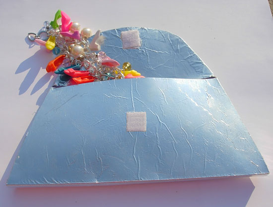 6. Using another piece of foil, trace flap and cut the shape out of the foil. Spray glue on dull side of foil and place on the inside flap. Smooth and trim if necessary.