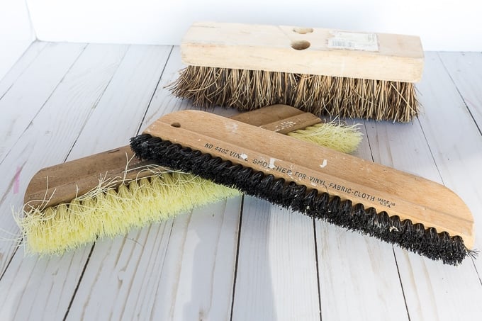 You can use any type of brush from a whisk broom to a shoe shine brush to create the texture and horizontal or vertical lines in the paint to resemble the texture in grasscloth. I think wallpaper smoothing brushes work the best though.
