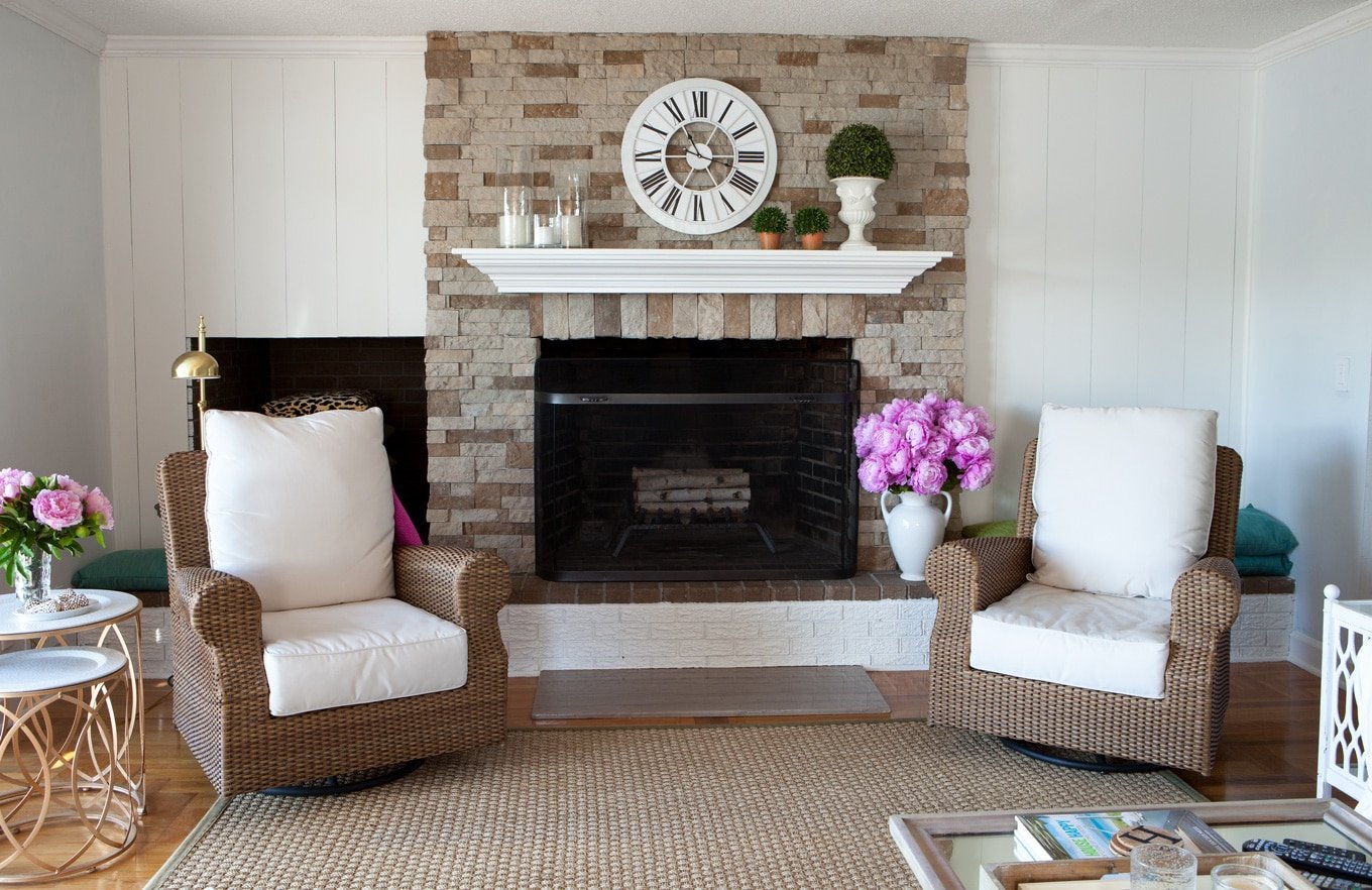 Both the mantel and the AirStone have completely changed the room. No more brick wall.