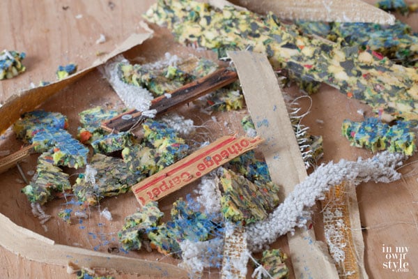 I swept the floor and vacuumed to make sure every piece of fiber, wood, and staple was gone so that I was able to put primer on the floor.