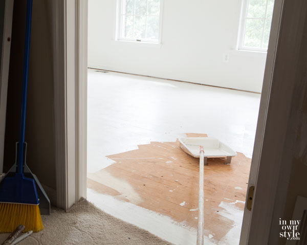 I already love it with the white primer on the floor. We’ve talked and talked about ripping up our LR carpet and painting the subfloor and using a couple area rugs. What a treat it would be not to have little stains, snags, etc. caused by our dogs ;-) Boy your room is going to be so pretty as well as functional. :-)